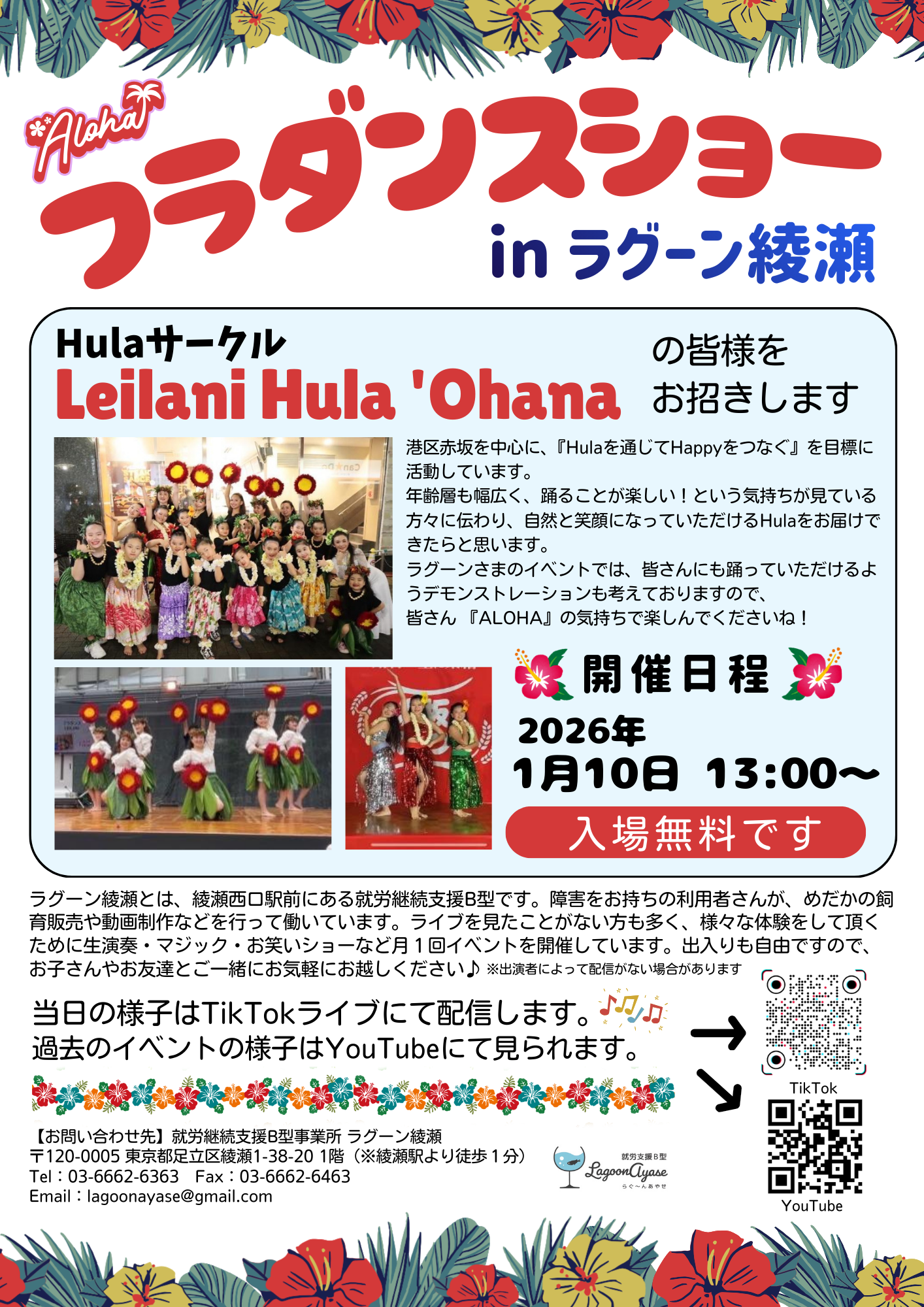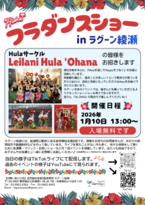 令和8年1月10日13時にフラダンスショーを開催します☆